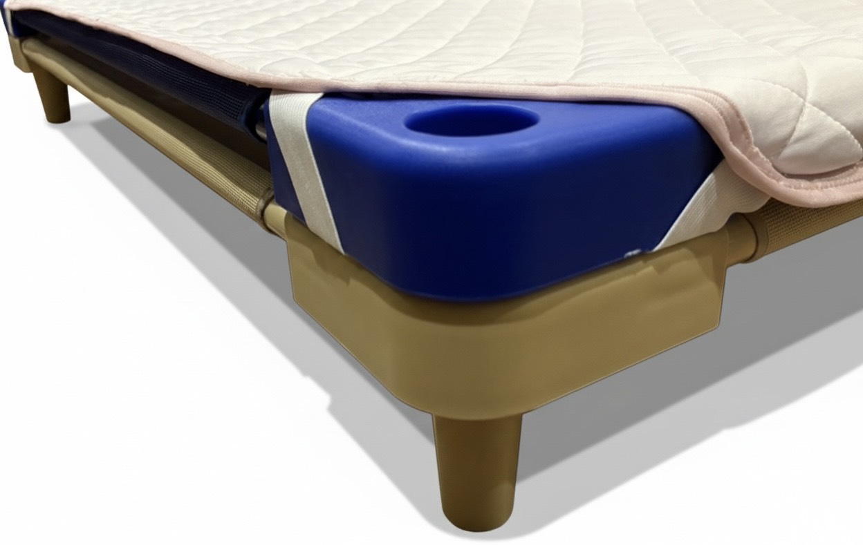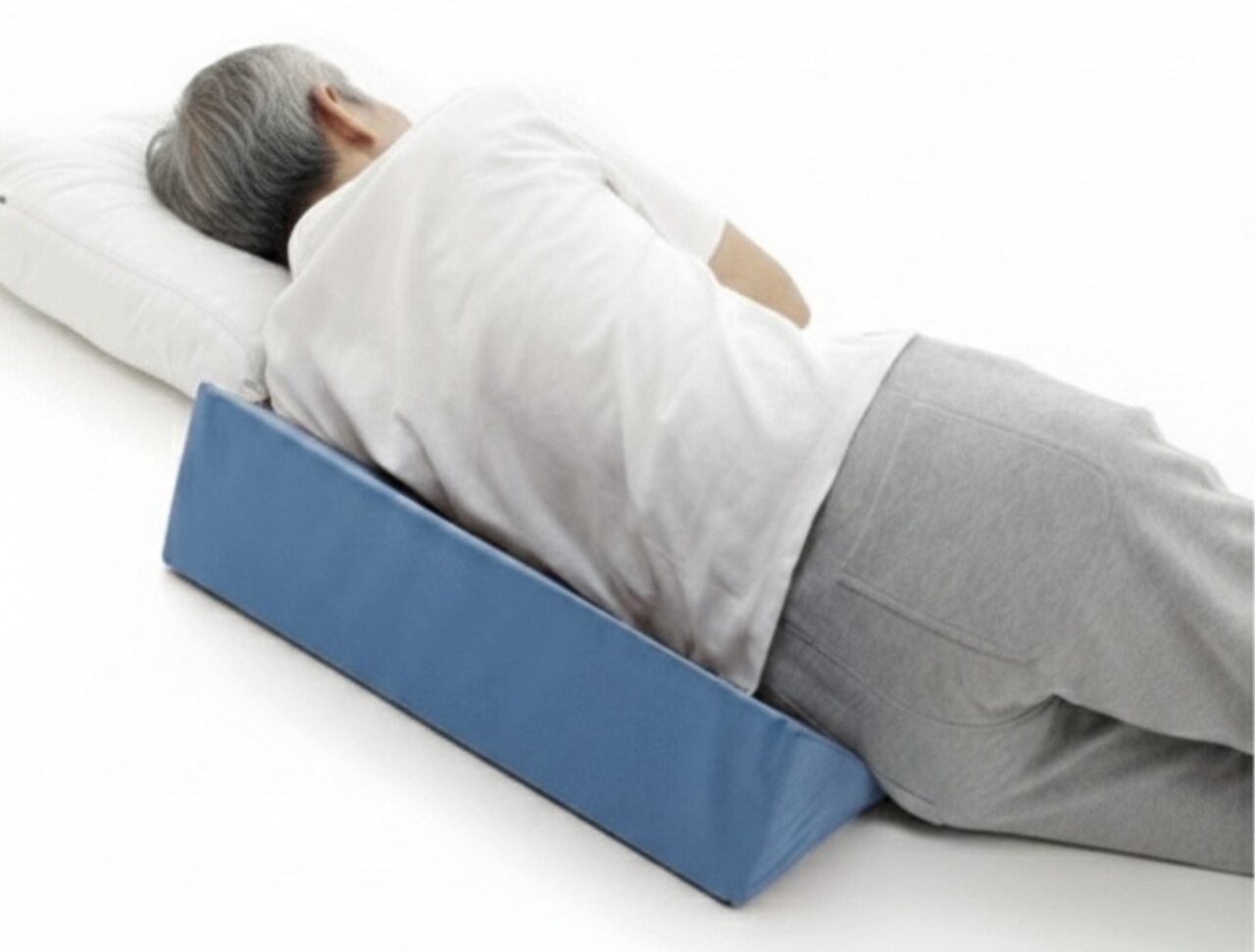 - 30度側臥位を保持し、背中・腰・臀部への圧迫を軽減(褥瘡予防に効果的)